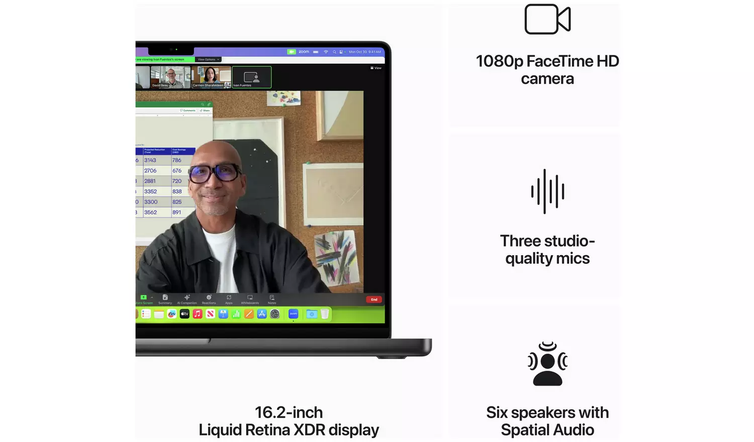 With macOS, work and play on your Mac are even more powerful. Elevate your presence on video calls. Access information in all-new ways. And discover even more ways to personalise your Mac. Look sharp and sound great with a 1080p FaceTime HD camera, a studio-quality three-mic array and a six-speaker sound system with Spatial Audio.