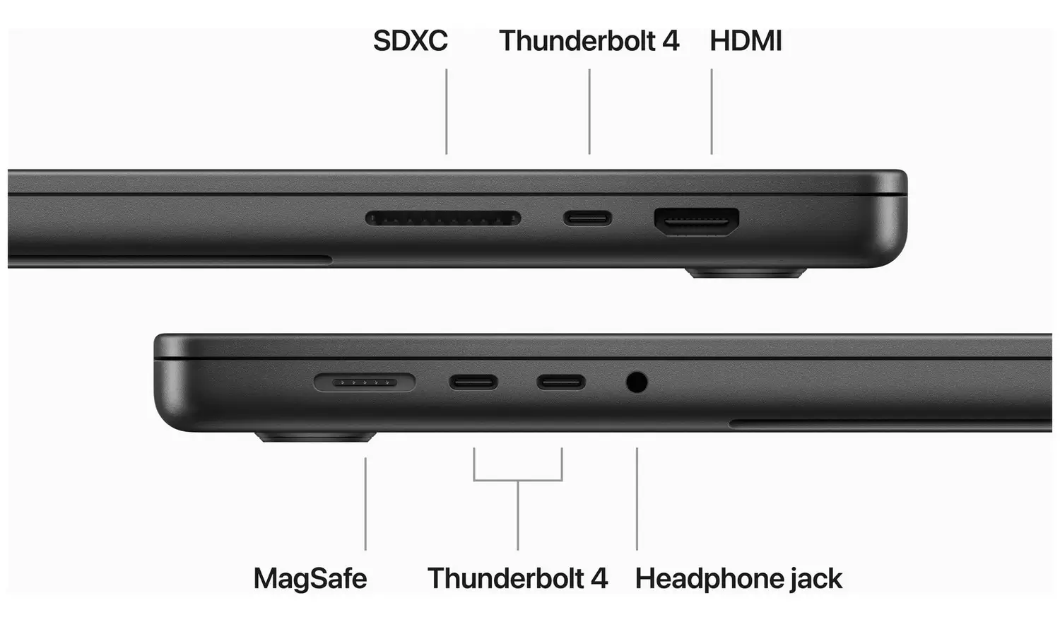 - Box Contents: MacBook Pro, USB-C Power Adaptor, USB-C to MagSafe 3 Cable (2m).
